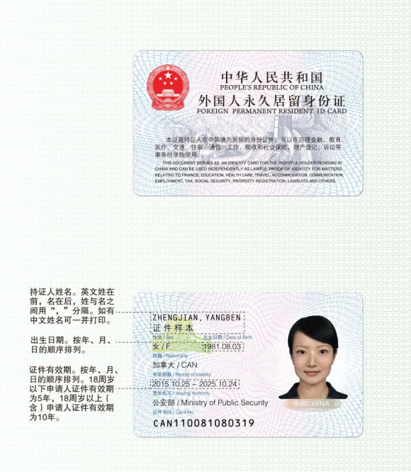 2017版外國人(rén)永久居留身份證